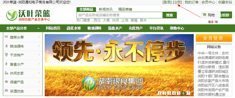 1.進(jìn)入沃葉菜籃首頁(yè),點(diǎn)擊右上解【注冊(cè)】。